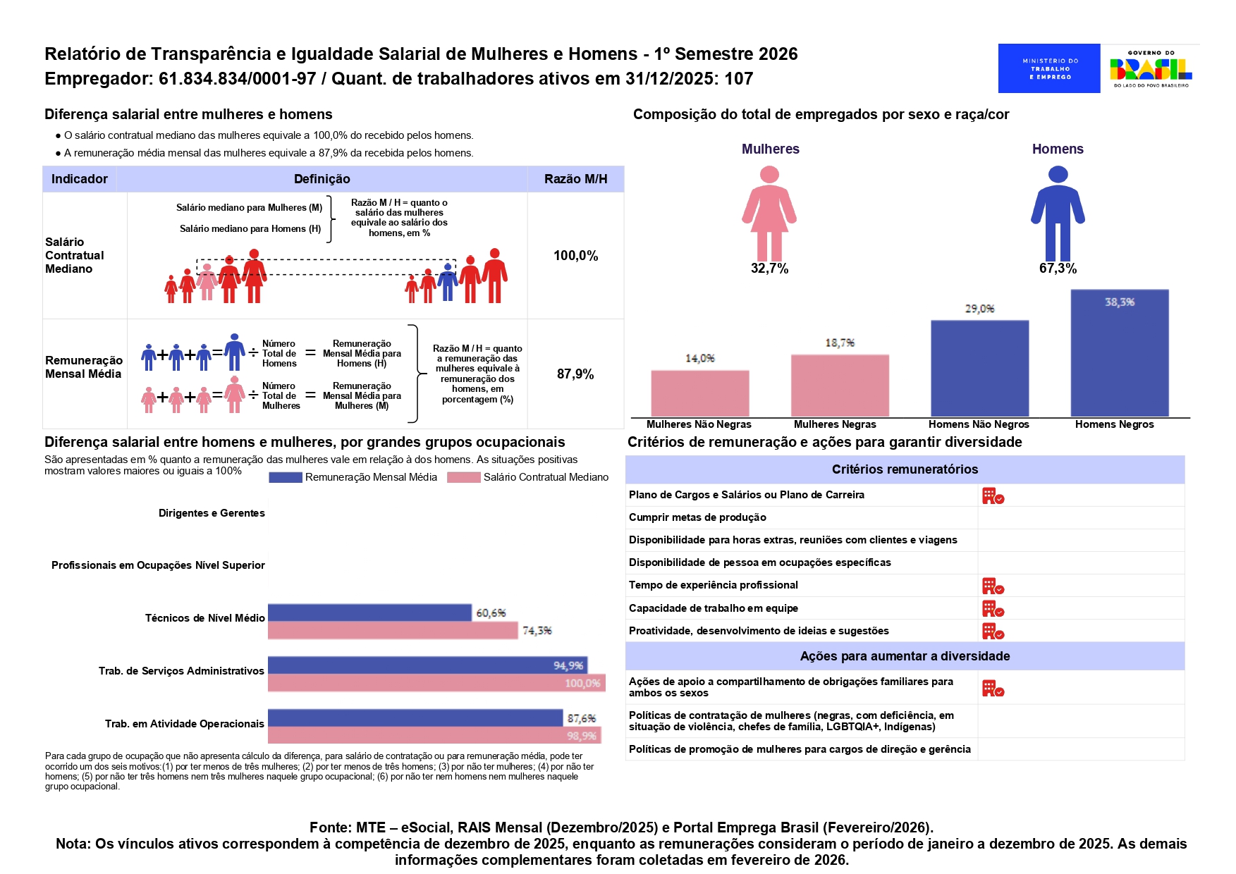Relatório de Transparência e Igualdade Salarial de Mulheres e Homens – 1º Semestre 2026